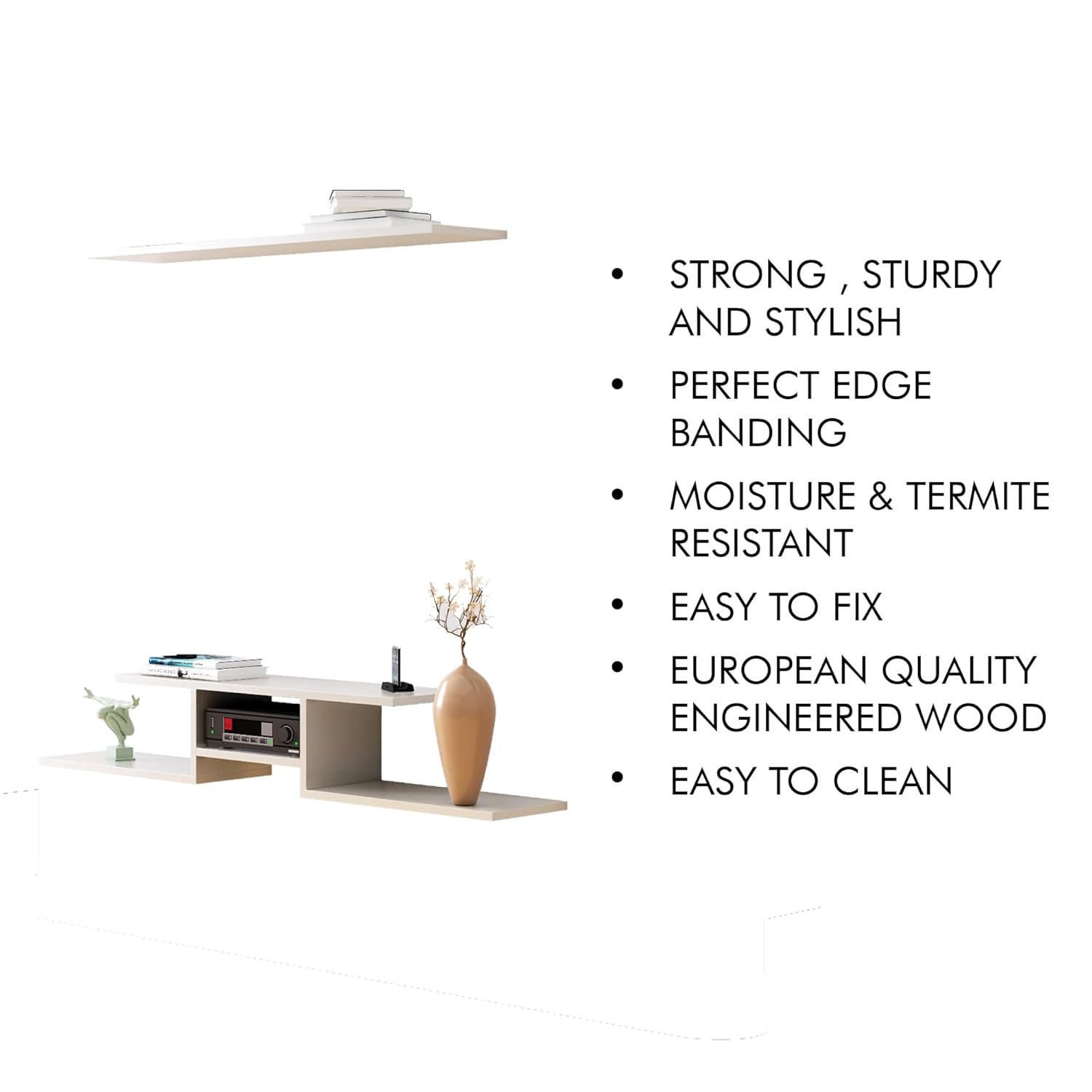 - Innovative Design: The TV Unit boasts a sleek and modern design, featuring clean lines and a minimalist aesthetic that seamlessly complements any living room decor. Its premium build quality ensures durability and longevity.