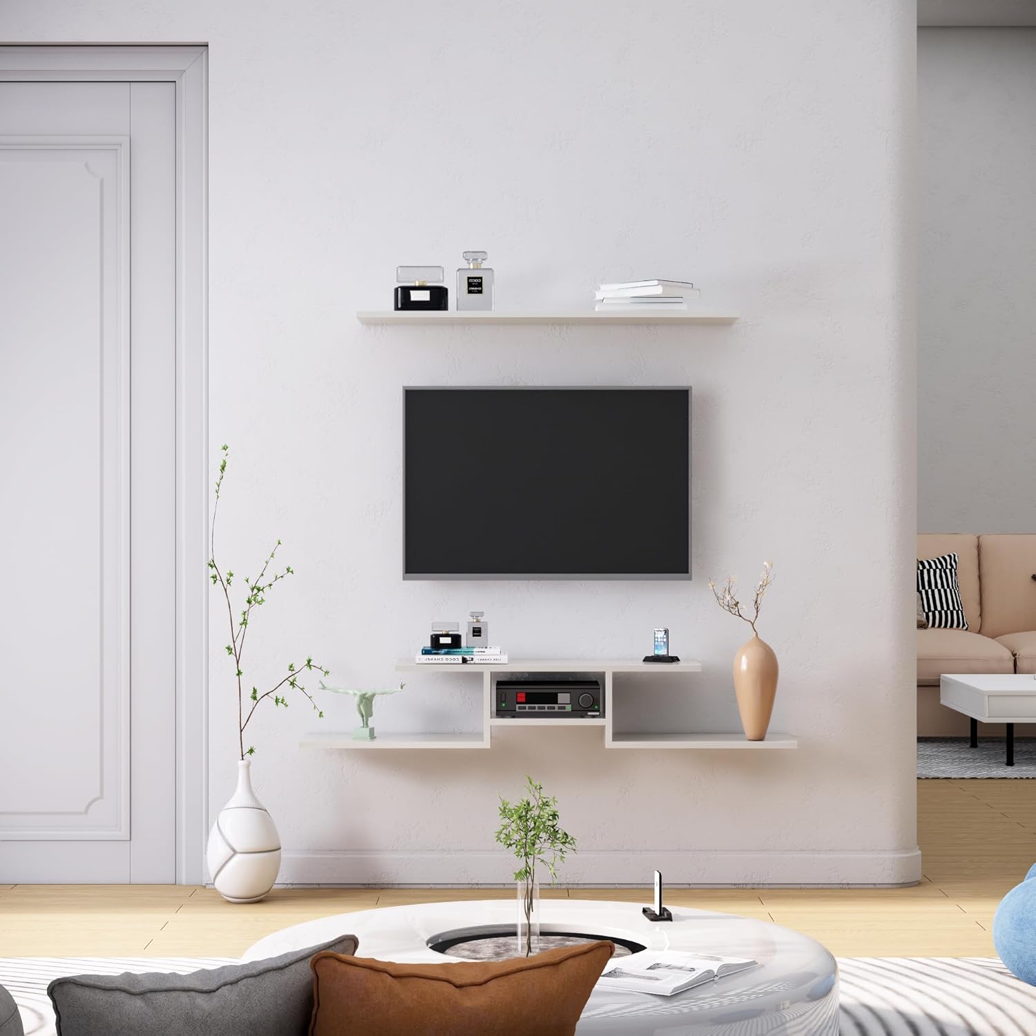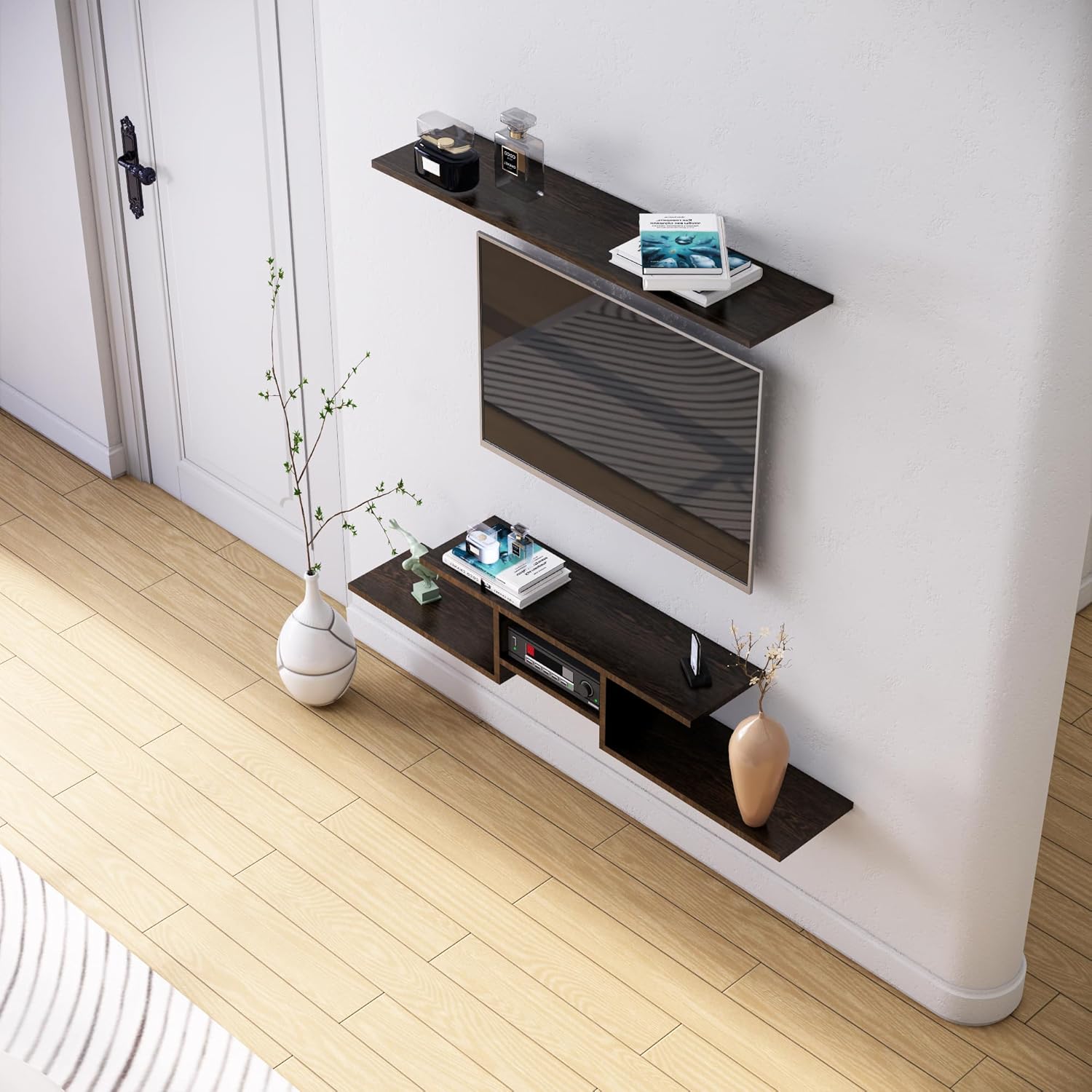 - Ample Storage Space: This TV unit offers ample storage space with multiple compartments and shelves to organize your media equipment, gaming consoles, and accessories. Keep your living room clutter-free and organized.